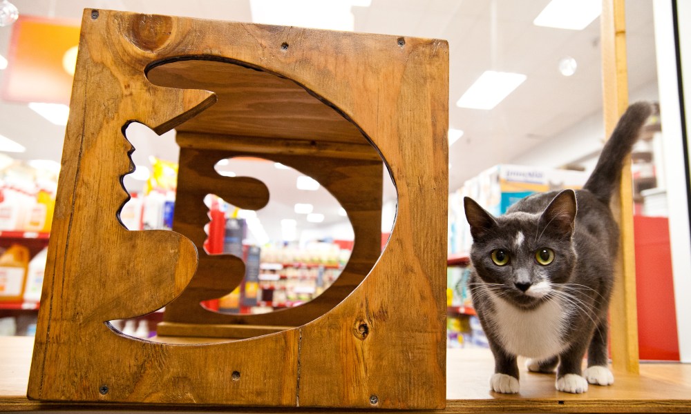 Despite the best efforts of volunteers and staff to socialize with our cats and improve their time at the shelter, it can still be difficult to watch them spend day after day inside a kennel. A colony room – a space in which multiple cats are able to roam free – provides one solution to this problem. Thanks to some especially creative volunteers at our Eastside Pet Adoption Center in the Kirkland Petco, cats here are now getting a well-deserved break from their kennels.