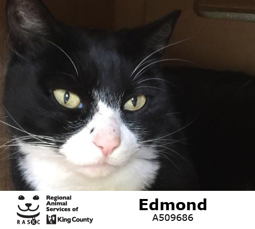 Want to adopt Edmond? Come see him, and all of his friends, at our Kent location, or online at www.kingcounty.gov/AdoptAPet. We hope we see you this weekend!