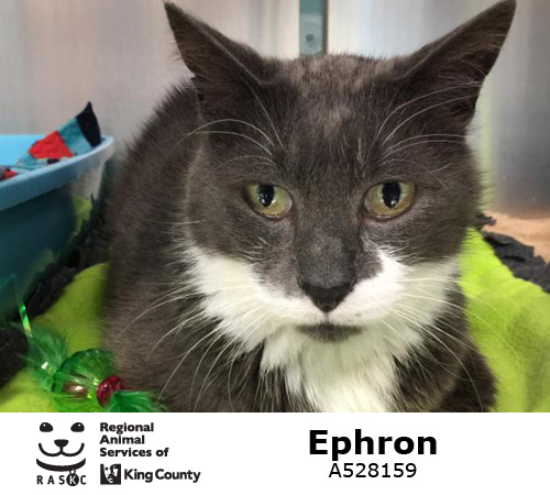 You can find out more about Ephron, and all his buddies, on our website at www.kingcounty.gov/AdoptAPet.