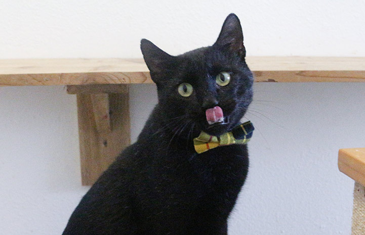 “It’s always helpful when cats have that friendly, outgoing personality,” she says. “Cats have to be OK with meeting lots of people each day, so it sounded like a good fit for him.”