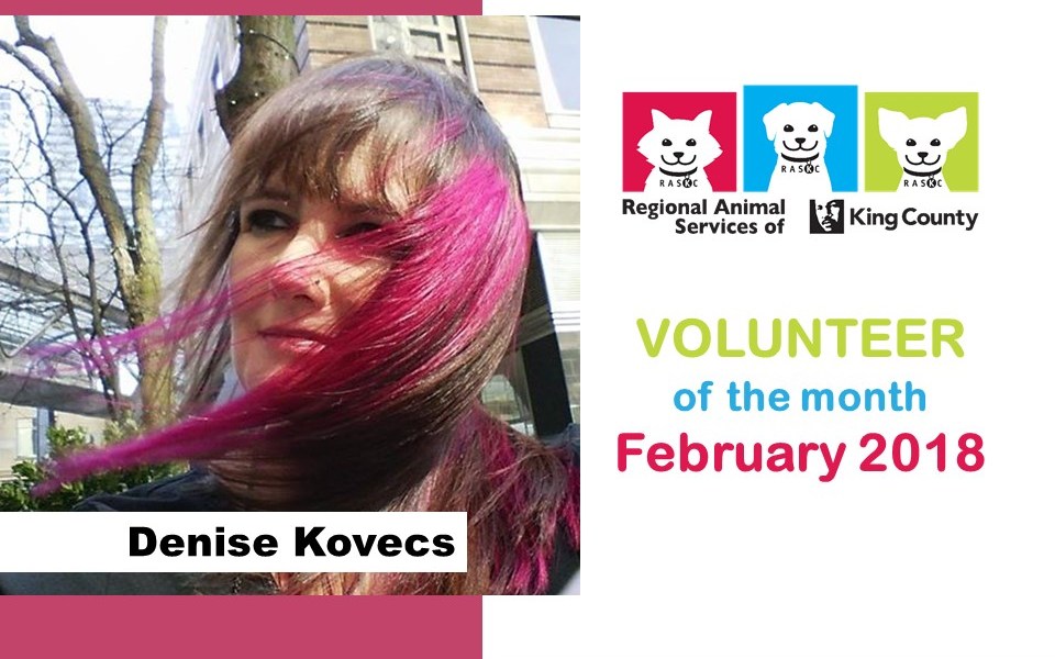 Meet Denise! RASKC is very happy to honor Denise Kovecs. She is very hard working, extremely resilient in the face of phenomenal challenges, amazingly dedicated, and she brings a fantastic background to RASKC. Denise has served as Lead Volunteer of our Covington Petco Cat-Care Team since this team launched in 2013. She works weekly shifts – Cat Meet and Greet and cat-grooming- in Kent, in addition to her weekly shift at Petco. For many years, starting in 2012, Denise also volunteered on a weekly shift on RASKC’s Reber Ranch Cat-Care Team. She has also participated in several special events for RASKC. You can see how she has easily contributed over 1,300 hours. Thank you, Denise!
