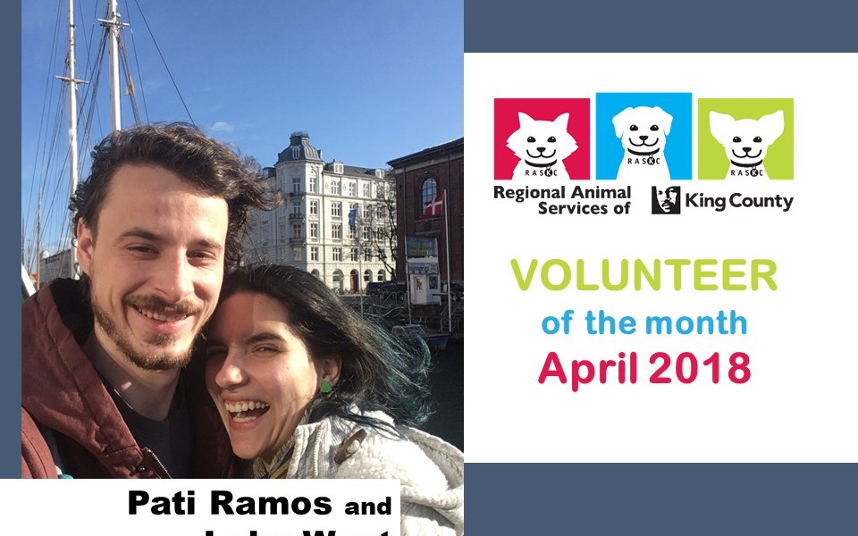 Meet Pati and Luke! RASKC is very happy to honor Pati Ramos and Luke West. They are terrific foster volunteers, who have contributed over 1,000 hours each year for the past three years, totalling over 4,375 hours donated so far since 2016. Pati and Luke are super friendly and regularly attend RASKC’s Springtime Annual Foster Celebration. Pati has helped other animal organizations too. She served as Co-Chair of the Sabbath Memorial Dog Rescue in Florida. She has volunteered for the Miami Humane Society, the Atlanta Humane Society, and Planned PEThood. Thank you, Pati and Luke!