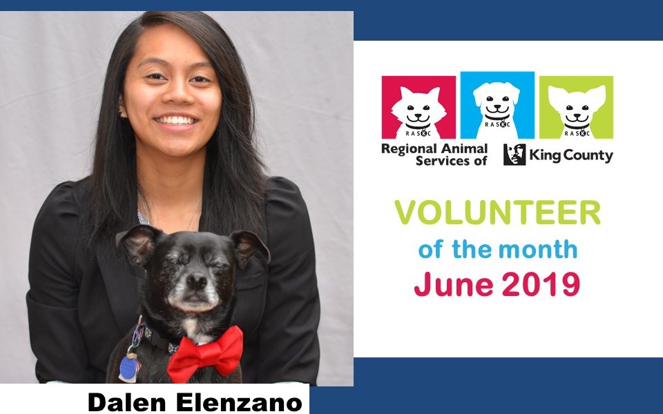 Meet Dalen! RASKC is extremely pleased to honor Dalen Elenzano. She attends PIMA Medical Institute. Dalen graduated in biology from both Highline College and Pacific Lutheran University. Dalen is one of the longest serving volunteers in RASKC’s Vet Clinic. She actually began on the Early Morning Cat Crew in 2013, then started in the Vet Clinic the following year. Dalen has contributed more than 670 hours so far. Thank you, Dalen!
