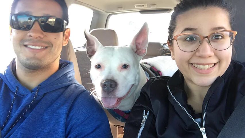 Then one day last summer, a young couple came in and whisked Django away. All of us were thrilled to see her leave, but also quietly wondering, “Is this the one?” Well – it’s been a year since Django’s adoption and we’re pleased to share that her new family has truly become her forever family!