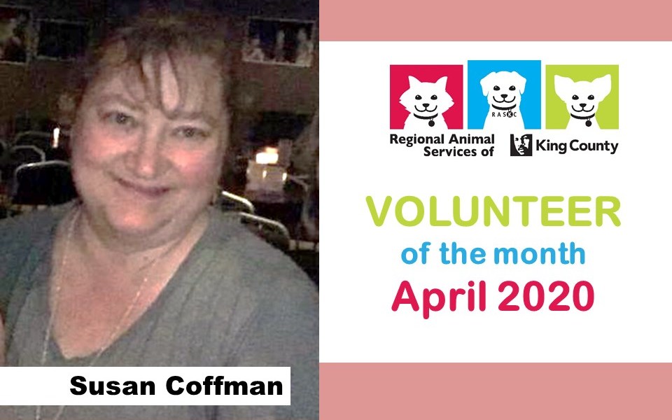Meet Susan! RASKC is super happy to honor Susan Coffman as Volunteer of the Month. Having begun as a volunteer in 2011, Susan is incredibly dedicated, extremely reliable, and very skilled— both on the Cat Meet & Greet team and in her role as Shelter Tour Lead Volunteer. Susan is exceptionally conscientious—the volunteer who raises the most number of excellent questions. She is wonderful about alerting the team leaders about anomalies and unusual situations. As a mentor, Susan has trained so many new volunteers. She has coordinated so many shelter tours too!