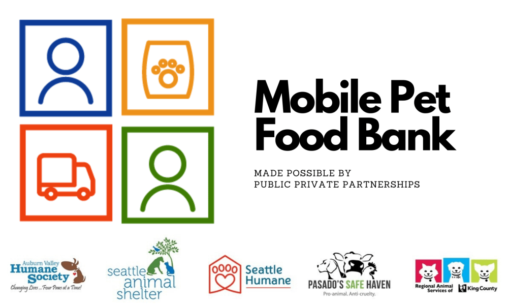 This regional project to keep pets healthy and well-fed is an amplification of the work Seattle Humane has performed for years through its own Pet Food Bank. Seattle Humane is committed to our 50 community partners and hundreds of individual clients served through our Pet Food Bank, and we want to increase our support as much as possible through this regional partnership. Pet owners who are unable to visit a physical location can visit this link to fill out and submit a Pet Food Bank request form.