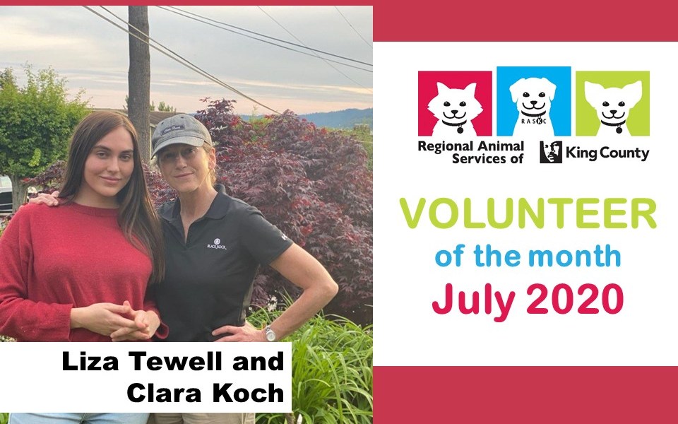 Meet Liza & Clara! RASKC is very pleased to honor Liza Tewell and her adult daughter Clara Koch, who have been fostering our animals every year for the past 13 years or so. So far they have contributed more than 6,000 foster hours. Foster Care Coordinator Lori Mason said, “Liza and Clara are both very sweet and love the puppies!”