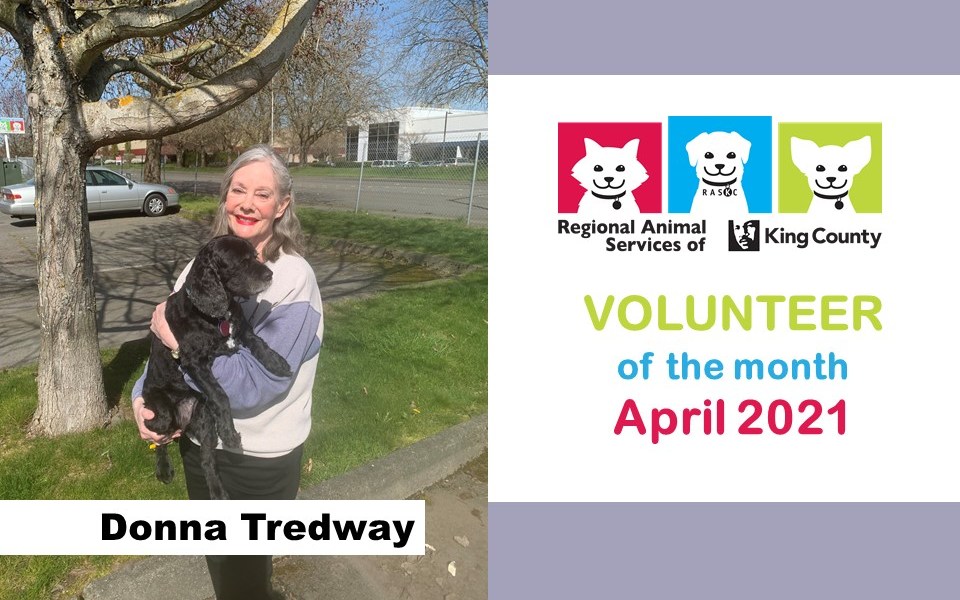 Meet Donna! RASKC is extremely happy to honor Donna Tredway as Volunteer of the Month. Having started in 2011, Donna is one of the longest-serving volunteers on a continuous weekly shift. She has contributed over 730 shifts so far. Donna is also one of RASKC’s most reliable volunteers. For many years, Donna worked two shifts each week- as a Dog Walker and on the Cat Meet & Greet Team. Donna mentors new volunteers and often fills in to cover gaps in scheduling. She is terrific to work with. Thank you, Donna!
