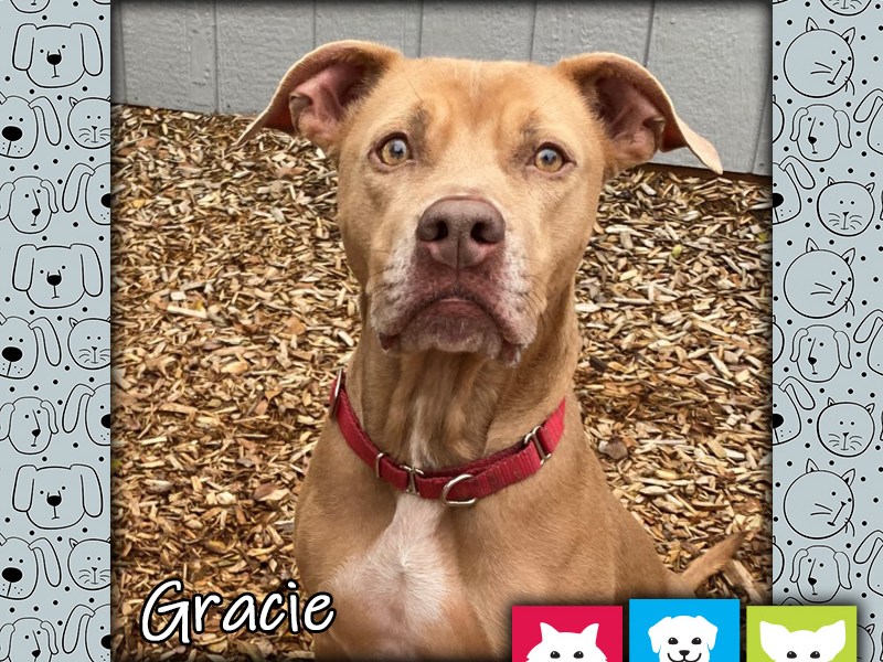Gracie is a spirited dog with a fun-loving personality, so she is one of our “Rambunctious Red” pets. She is still working on good doggy manners, so she would do best with a family who is willing to work with her to help her become the best dog she can be!