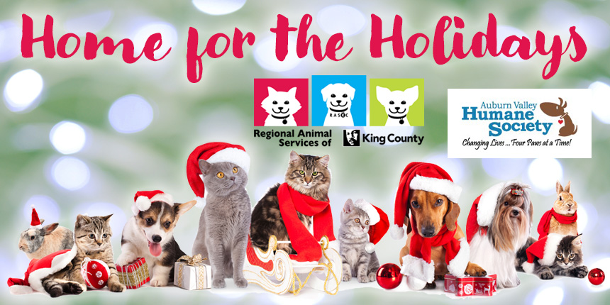 The days are getting colder as winter sets in – why not warm up with a new pet? Regional Animal Services of King County (RASKC) is teaming up with Auburn Valley Humane Society (AVHS) to lower pet adoption fees during the “Home for the Holidays” special.
