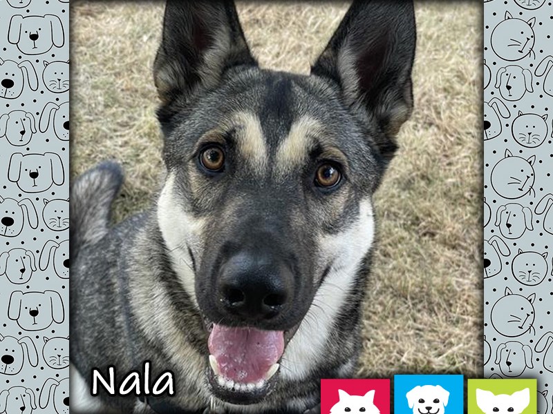 This young German shepherd/Alaskan husky mix first came to the Pet Adoption Center in early August because her owners were moving to a place that didn’t allow large dogs. Nala was adopted, but came back to us in early October because she was reactive to small dogs. At 54 pounds, Nala is on the larger side of a medium-breed dog.