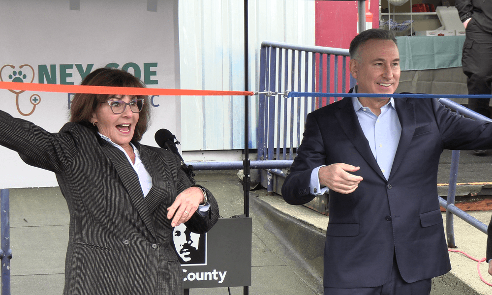 King County Executive Dow Constantine joined Doney Coe Pet Clinic Board President Marti Casey to celebrate the opening of a new veterinary facility for low-income and homeless families at a new location inside an unoccupied King County building. The clinic, located in Seattle’s SoDo neighborhood, provides essential veterinary and animal wellness services at zero cost to those who are eligible.
