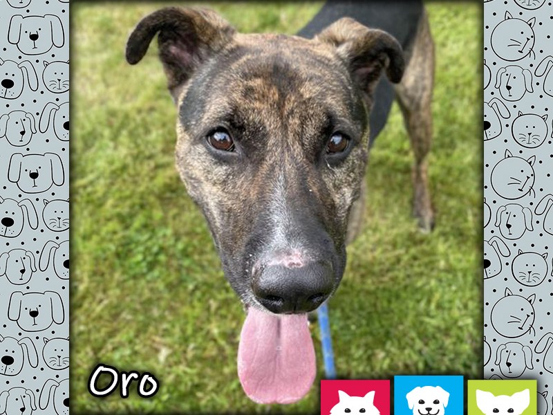 This affectionate lovebug was brought in to the Pet Adoption Center in late May by a good Samaritan. At 64 pounds, Oro is considered a large breed dog.