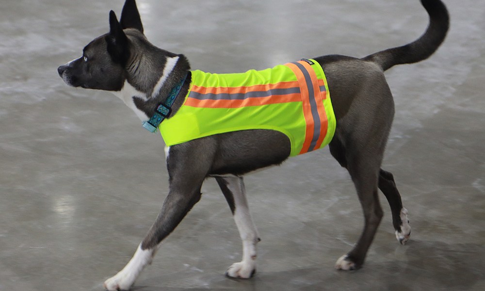 On April 2, members of the RASKC team met on-site with the county’s Facilities Management Division (FMD) and the design team to look at draft floorplans and get an idea of what the flow through the building will look like. They were joined by Winnie, a RASKC alumnus dog, who has become the project’s unofficial mascot.