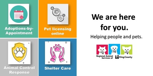 King County is now in Phase 2 of Gov. Inslee’s “Safe Start” plan, another step forward as we work to carefully and gradually recover from the COVID-19 pandemic. Our focus at Regional Animal Services of King County continues to be helping people and pets safely as our region emerges from the public health emergency. Many […]