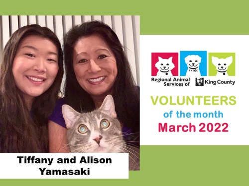 Meet Tiffany and Alison! RASKC is profoundly pleased to honor this mother/daughter duo as our Volunteers of the Month. Tiffany and Alison Yamasaki have fostered almost 50 kittens total over the past dozen years, including each year of the pandemic. They are wonderful to work with! Foster Care Coordinator Lori Mason says, “I am so […]