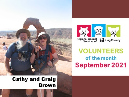 Meet Cathy and Craig! RASKC is profoundly pleased to honor Craig and Cathy Brown as Volunteers of the Month. They are among RASKC’s top foster volunteers. Foster Care Coordinator Lori Mason said, “I love them!” Since they began in 2012, Cathy and Craig have contributed more than 6,600 hours, mainly fostering- also with animal transports and […]